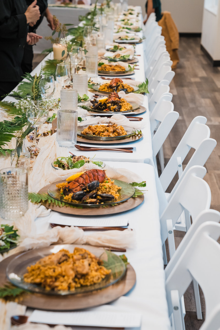 After the ceremony, everyone headed inside for a delicious paella dinner together. This is another reason I love Agate Beach Lodge for micro weddings—it creates such a natural flow to the day. Ceremony outside, dinner inside, everything close and connected. There’s something really special about gathering around a table after a day like this. Stories get shared, people relax, and the whole experience starts to settle in.